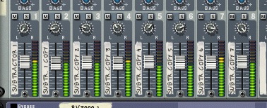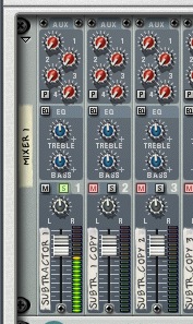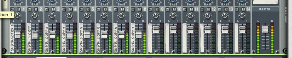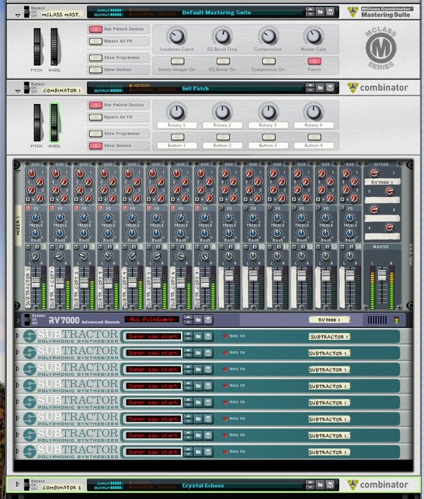 The massive wall of Subtractors. It’s worth mentioning at this point that you can actually create this patch with as many saw waves as you like. Try 20, or even 100, if you’ve temporarily lost your sanity. Now make sure that each synth is routed to its own channel on the mixer, this will have to be done manually and is a slightly lengthy process.