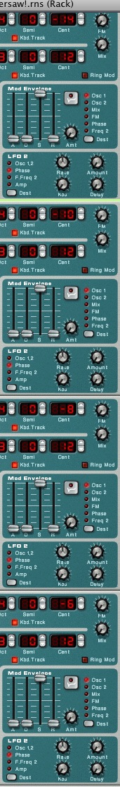 The first four synths using negative tunings.